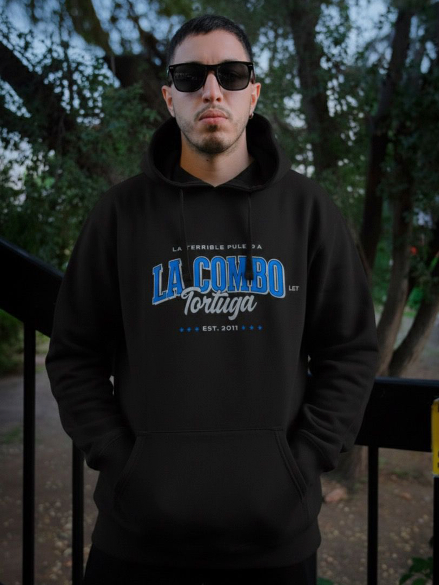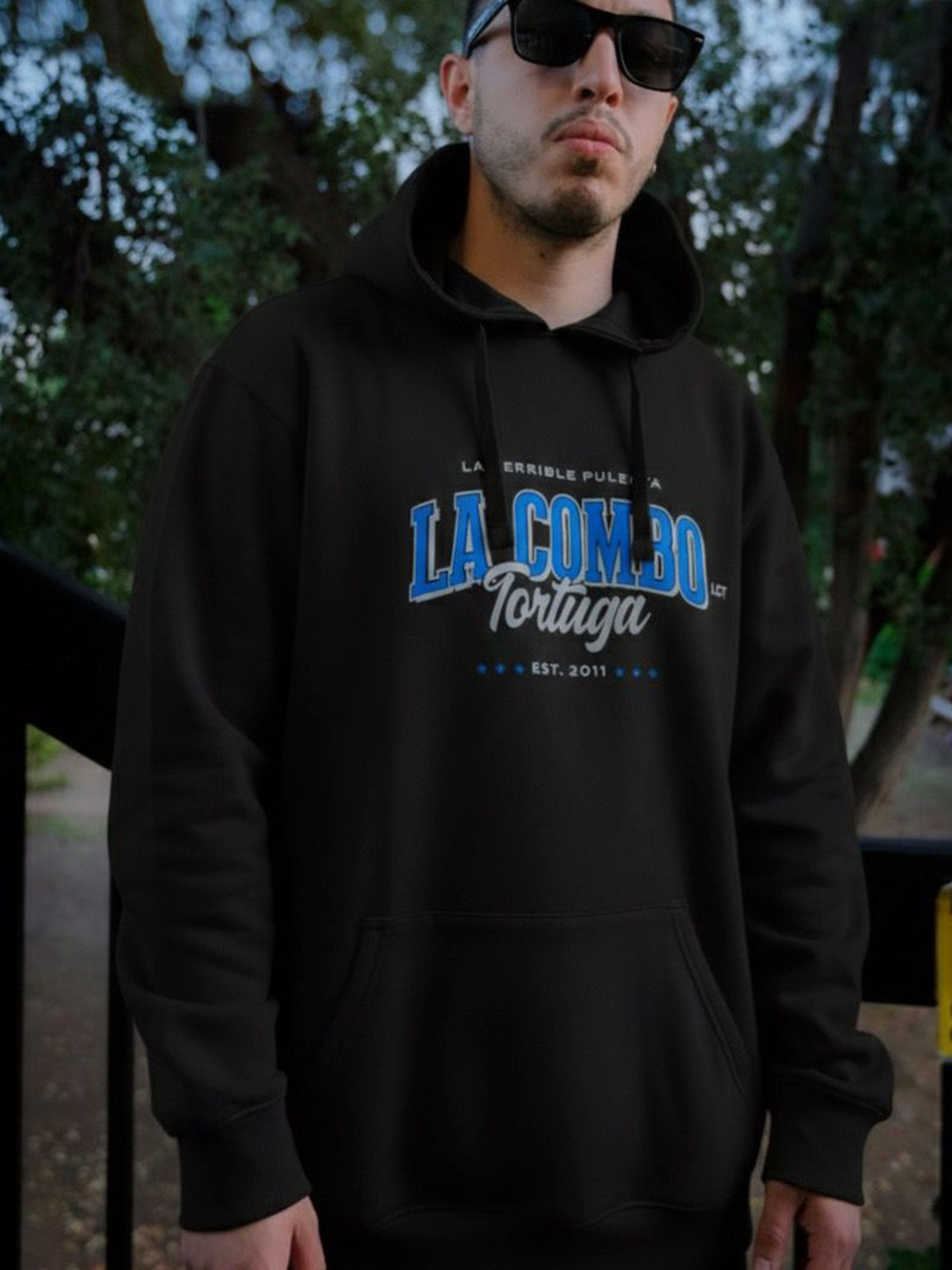 Polerón de Franela Negro, con el logo «La combo Tortuga»